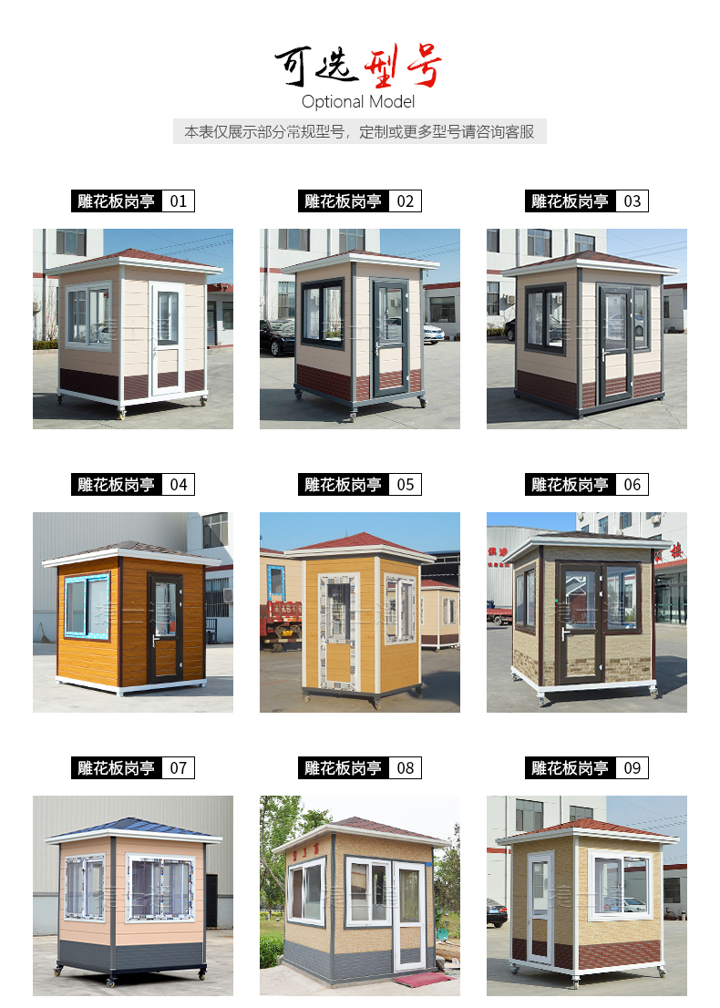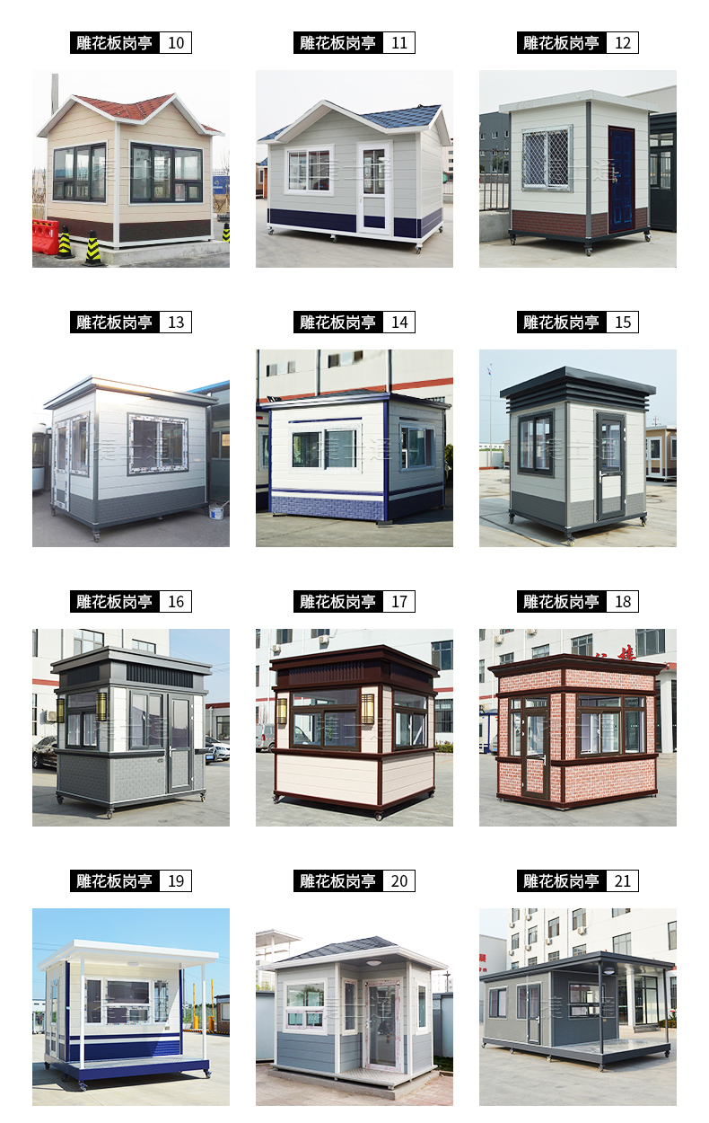 捷士通崗亭憑著外型美觀大方,設(shè)計新穎走進海南省地區(qū),雕花板材質(zhì)有著很好的保溫效果,
