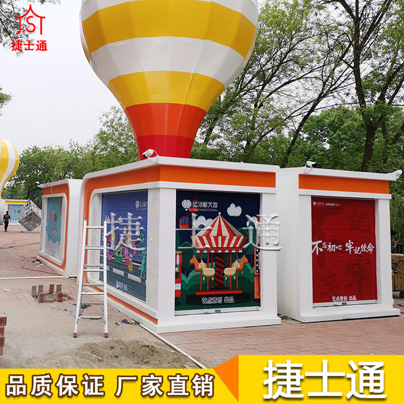 考慮到夜市經(jīng)營主要集中在夏季,在熱氣球周圍還設計了噴霧系統(tǒng)進行降溫處理,捷士通定做的崗亭設計人性化,外型美觀大方;