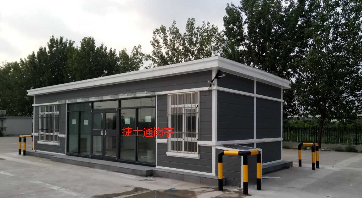 天津捷士通產(chǎn)品包括保安崗亭、收費崗亭、志愿者服務亭、城市報刊亭、移動警務室、治安崗亭、吸煙亭、設備房、