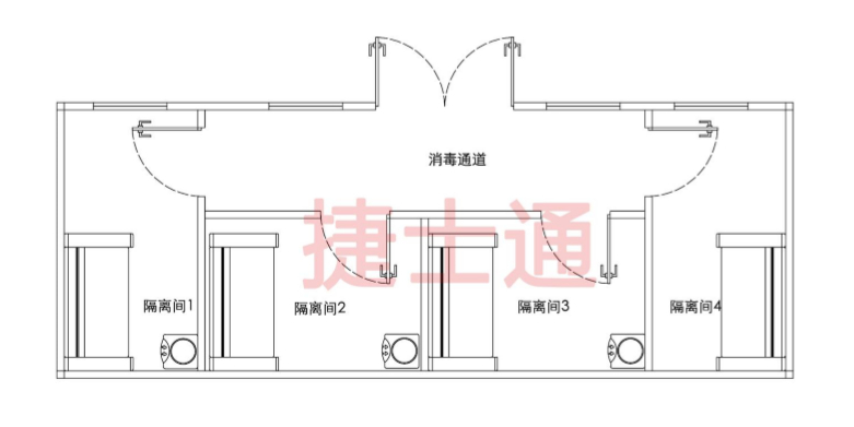 1、隔離間:數(shù)間負(fù)壓隔離病房,有利于控制病毒進(jìn)一步傳播。