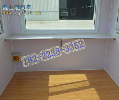幼兒園保安崗?fù)?/a>的內(nèi)部構(gòu)造和構(gòu)成,幼兒園的保安崗?fù)?/a>采用木地板,還有工作臺(tái)及防火墻