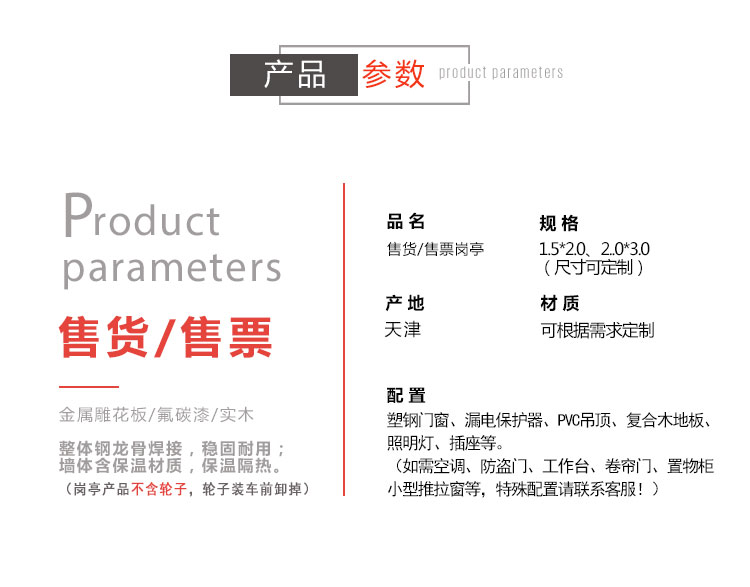 商亭也可以被稱作售貨亭,出售商品的像亭子的小房子。戶外可移動(dòng)商亭、整個(gè)商亭結(jié)構(gòu)設(shè)計(jì)合理、在頂部安裝醒目的廣告標(biāo)志、讓您在廣場(chǎng)上一眼就能找到它所在的位置、商亭售貨窗頂部安裝防水細(xì)節(jié)設(shè)計(jì),為您遮風(fēng)擋雨!