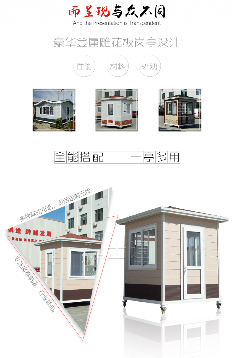 金屬雕花板保安崗?fù)?/a>當(dāng)然也可以作收費(fèi)崗?fù)な褂玫模?.5*2、2*2、 2*3大量現(xiàn)貨供應(yīng),冬天保暖是必須選項(xiàng),現(xiàn)在小區(qū)也注重美觀大方了,沒關(guān)系 ,捷士通是有實(shí)力的大廠家,可以定制,批量很是歡迎,為了小區(qū)整體效果,現(xiàn)在好多物業(yè)都在采購金屬雕花板保安崗?fù)?,外型顏色可以改變?br />